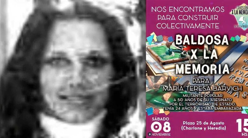 Leer másTiempo de lectura: 2 minutos El 4 de noviembre de 1975, María Teresa Barvich, militante popular fue matada por una patota
