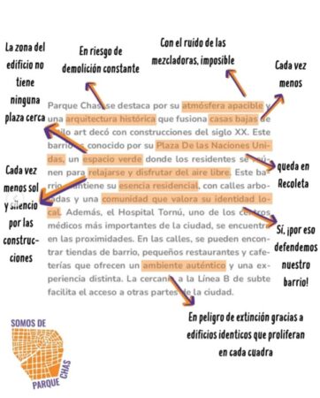 “Somos de Parque Chas” es una de las asambleas ambientalistas que integran la “Interbarrial Buenos Aires”, un Colectivo ambientalista representado por distintos barrios porteños que hace unos años presentó una nota al jefe de Gobierno Horacio Rodríguez Larreta pidiendo que suspenda ya los permisos de obra nueva que superen los tres pisos de altura, de demolición y certificados urbanísticos.